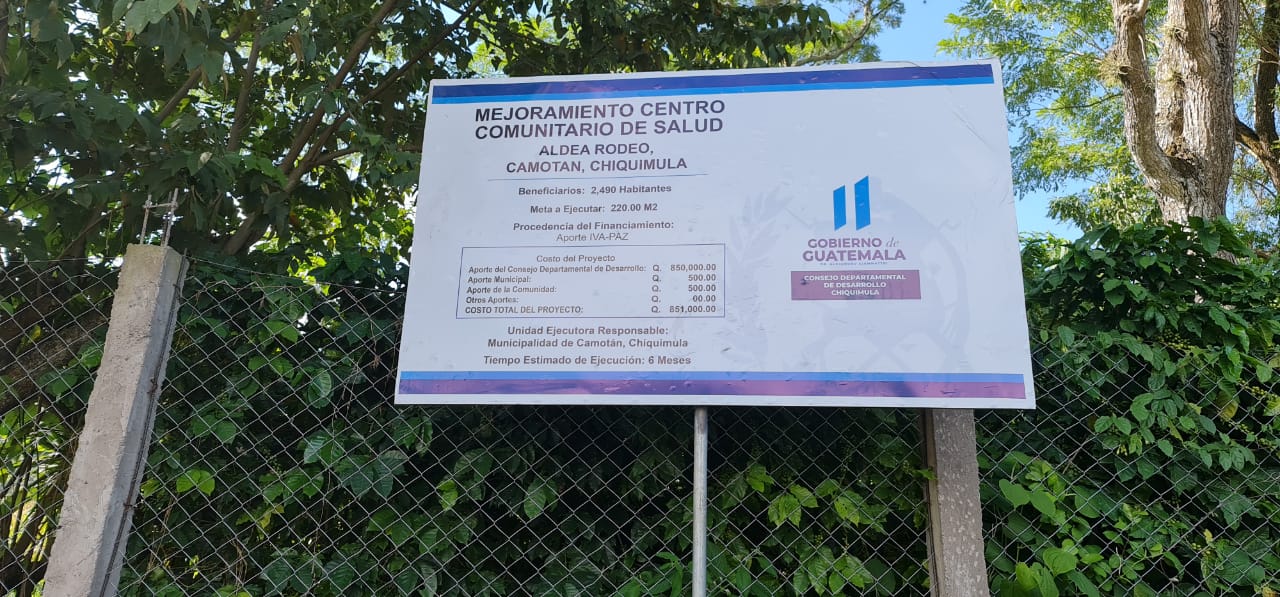 Supervisión al proyecto denominado: "MEJORAMIENTO CENTRO COMUNITARIO DE SALUD ALDEA RODEO, CAMOTAN, CHIQUIMULA", SNIP No. 263024 y Convenio de Cofinanciamiento No. 23-2021. La visita al proyecto fue realizada por el Supervisor de Proyectos de este Consejo Departamental de Desarrollo en coordinación con personal de la Municipalidad de Camotán.