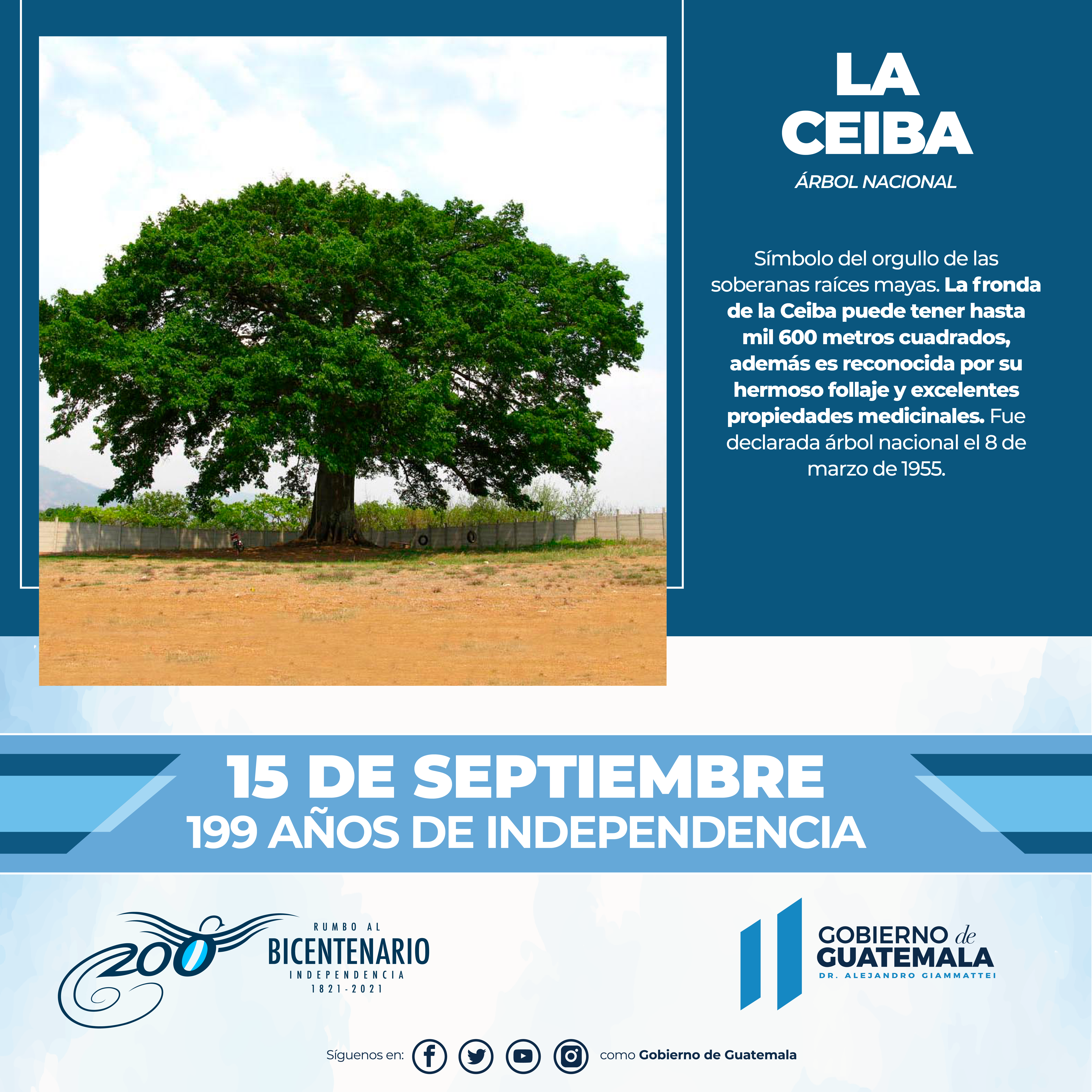 La Ceiba Pentandra, es el árbol Nacional de Guatemala. Simboliza el orgullo de nuestras soberanas raíces Mayas, el 8 de marzo de 1955 el coronel Carlos Castillo Armas firmo un Acuerdo gubernativo.