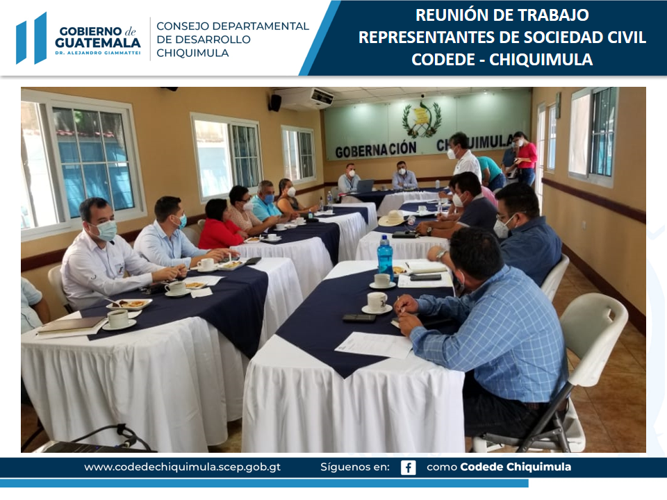 El día de hoy, Director Ejecutivo de este CODEDE, participó en reunión de trabajo con Representantes de Sociedad Civil ante el pleno de este Consejo Departamental de Desarrollo.